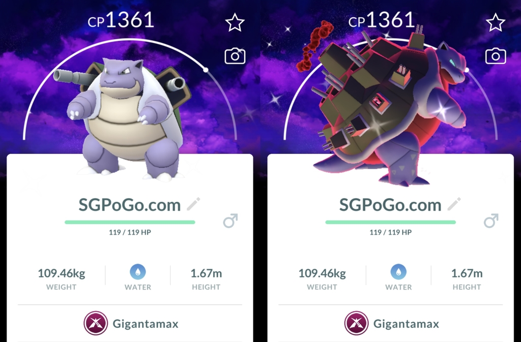 Shiny Gigantamax Blastoise Amped with Dark SKies background